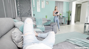 Русская телочка в обтягивающих лосинах хвасталась растяжкой и упругой задницей. Симпатичная штучка с шикарным телом возбудила белобрысого парня дальше некуда и сразу начала сосать член. Когда спортсменка отработала ртом и получила ответный кунилингус, она дала оттрахать себя по всем правилам и мигом кончила.
