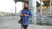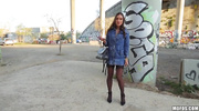 Alyssa Reece с маленькой грудью покрасовалась перед пикапером и возбудила его дальше некуда. Развратница в чулках нарвалась на уличный секс и сразу начала сосать член. Дамочка умело отработала ртом, а после этого раздвинула ножки и дала оттрахать пилотку по самую матку и прямо на свежем воздухе.