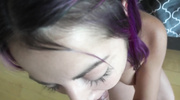 Девка с фиолетовыми волосами согласилась на съемку домашнего порно крупным планом и сразу же пустилась во все тяжкие. Сучка с удовольствием обслюнявила член и довела мужика до пика наслаждения. Когда развратница закончила работать ртом, она получила трах в тугое очко и мигом достигла бурного и яркого оргазма.