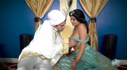 April O'Neil показала сочные формы и возбудила мужика в костюме Аладдина. Жасмин тут же раздвинула ножки и дала вылизать мокрую киску до блеска. Когда милфа с большими сиськами насладилась кунилингусом, она в ответ отсосала член, а уже потом приняла его в мокрую пилотку и громко стонала, пока не кончила.