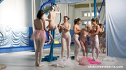 Балерины-фитоняшки устроили лесбийскую оргию, наслаждаясь нежным кунилингусом. Несколько цыпочек сначала стали баловать друг друга пальчиками и страстными поцелуями, лежа на полу. Когда похоть захлестнула, девушки перешли к куни, вылизывая сладкие киски язычками до блеска. Их тела тряслись в такт ласкам, они громко стонали, кайфуя от оргии. Крошки обильно кончили по несколько раз, насладившись нежным финалом.