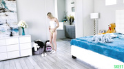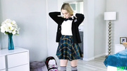 Скромная и миленькая студентка в ошейнике покрасовалась перед отцом и возбудила его дальше некуда. Девчушка напросилась на секс, о котором с ровесниками и не мечтала. Крошка с удовольствием взяла член за щеку и смочила его слюнями по всем правилам. После этого блондиночка отдалась в бритую пилотку и мигом кончила.