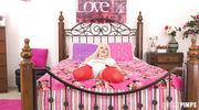 Кензи Ривз в чулочках облила себя маслом и стала мастурбировать розовую киску. Беленькая девчонка получила удовольствие от пальчиков, а потом начала играться с длинным дилдо. Хорошенько облизав огромный резиновый член, крошка засунула его глубоко в мокрую вагину и мигом достигла бурного и яркого финала.