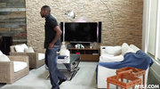 Красотка с силиконовой грудью дала черному любовнику сковать себя наручниками и нарвалась на межрасовый секс в стиле БДСМ. Дамочка в белых чулках получила член за щеку и смочила его слюнями по всем правилам. После этого блондиночка отдалась в волосатую пилотку и громко стонала, пока не испытала бурный оргазм и не получила сперму на лицо.