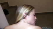 Получив бабки от пикапера, блонда рванула в его подъезд. Потаскушка жадно заглотила болт, пуская слюни, и скинула шмотки, оголив сиськи. Шлюшка подставила киску, и он долбил ее, шлепая по дойкам, прижав к стене и на лестнице. Она кончала, крича от кайфа, наслаждаясь глубокими толчками. Сперма брызнула на ее попку, завершив быструю сделку оргазменным экстазом.