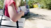 Услышав про бабки и оргазм, блонда в футболке рванула с пикапером в укромный угол. Шлюшка жадно заглотила его болт, давясь слюнями, теребя сиськи. Потаскушка подставила киску, и он долбил ее, меняя углы — стоя, на ящике. Крошка громко стонала, кончая без остановки, а сперма заполнила ее рот, завершив сделку кайфом.