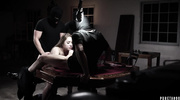 Мужики в масках ворвались к грудастой блонде. Похотливая шлюшка смочила их члены слюнями, боясь за жизнь. Они таранили её мокрую пилотку и попку двойным проникновением, заставляя кричать. Её сиськи дрожали, а стоны гремели. Сперма брызнула на её лицо. Пол скрипел, а её бельё порвалось. Жгучая дива смаковала экстаз.