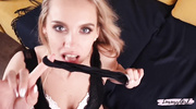 Блондинка в белье и чулках дразнила друга на диване. Она смочила его член слюнями, заглатывая по гланды, и вогнала пробку в анус. Чувак долбил её киску, пока сучка не застонала от кайфа. Оргазм накрыл её с головой. Сперма брызнула на лицо. Крошка облизнулась, хрипя от экстаза, и рухнула, наслаждаясь.