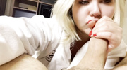 Камера запечатлела блондинку в одежде, сосущую болт в спальне. Она отсасывает, пуская слюни, разжигая страсть. Её губы ласкают ствол, вскрики наполняют дом. Формы колышутся, кожа лоснится от возбуждения. Пускаясь во все тяжкие, она теребит клитор, оргазмы накрывают её. Сперма брызжет на её лицо, и она закатывает глаза от экстаза.