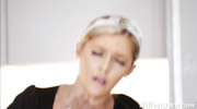 Униформа и стринги служанки-блондинки обещали быстрый и грязный трах. Босс на кухне не стал терять времени. Он с силой задрал юбку и ворвался в её вагину. Мужик долбил её жестко, заставляя стонать все громче и громче. Она билась бедрами в такт его толчкам. Он трахнул её до исступления. Финал завершился его горячей спермой, вытекшей на стринги горничной.