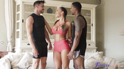 Briana Banderas напялила короткие шортики и в таком наряде стала хвастаться прелестями перед тренерами. Брюнеточка с аппетитными формами возбудила мужиков дальше некуда и тут же начала сосать члены. Продолжая работать ртом без остановки, фитоняшка выпросила трах в розовую и узкую пилотку, благодаря чему и достигла оргазма.