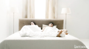 Вместо того, чтобы пытаться кончить с помощью шаловливых пальчиков, красивая брюнеточка сняла кружевное белье и развела парня на утренний секс. Малышка получила член за щеку и смочила его слюнями. После глубокого минета развратница насладилась ответным куни и кончила от глубокого проникновения в розовую пилотку.