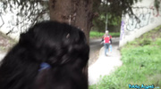 Кудрявая брюнетка показала сиськи пикаперу и ушла с ним в укромный угол. Она жадно заглотила его ствол, пуская слюни, и встала раком. Парень драл её киску в стиле POV, пока она не визжала от кайфа. Сучка кончила, трепеща от экстаза. Сперма залила её лицо, и она смаковала, размазывая. Камера ловила её оргазм и похотливые крики. Телочка кайфовала от спонтанного траха.