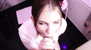 Сексуальная крошка принимала душ, когда чувак ворвался в ванную и застал ее голой, с мокрой кожей, блестящей от воды. Она не растерялась, а соблазнила его взглядом и начала работать ртом, чтобы доставить ему кайф. Девка опустилась на колени, взяла его твердый член и заглотила по гланды, хлюпая слюнями и облизывая ствол по всем правилам, давясь, но не останавливаясь. Она чавкала, массировала яйца, слюни текли по подбородку, делая все скользким. Он стонал, держа ее за волосы, пока она сосала, доводя его до дрожи. Ее губы скользили по члену, облизывая каждую вену, а она смотрела ему в глаза, усиливая возбуждение. Минет был жарким, с громкими звуками и влажной кожей, она не пропускала ни сантиметра, заглатывая глубже. Он трахал ее рот, шлепая членом по языку, пока она не довела его до предела. В финале он кончил ей на лицо, густая сперма покрыла губы и щеки, она облизала их, улыбаясь от удовольствия, а липкая жидкость стекала по ее мокрой коже.