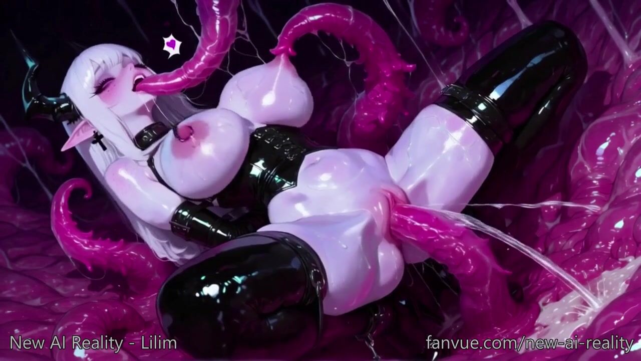 Тентакли порно с демоном Лилим, фиолетовые языки похоти ублажают демонессу со всех сторон.