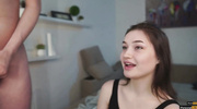 Девчонка облизывает член прямо через трусы, нетерпеливо ожидая большего. Брюнетка в домашней одежде встала на колени, прижавшись к его паху. Она начала облизывать ткань, возбуждая любовника. Красотка работала ртом, пытаясь достать язык до члена. Женщина продолжила оральные ласки, пока он не кончил спермой, залив ее трусики и рот.