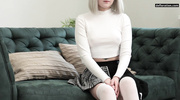 Миленькая блондинка в короткой юбке пришла на кастинг, где сразу получила заманчивое предложение от агента. Чтобы стать звездой, малышка послушно сняла лишнюю одежду и начала мастурбировать мокрую киску. Сучка без остановки баловала себя пальчиками и громко стонала прямо перед камерой, пока не заработала яркий оргазм.