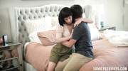 Брюнетки с короткими стрижками покрасовались перед сводным братом одной из них и запросто возбудили его дальше некуда. Цыпочки нарвались на ЖМЖ и сразу начали сосать член. После слюнявого отсоса подружки по очереди оседлали член и лицо чувака и получили нереальное удовольствие от кунилингуса и глубокого проникновения в вагины.