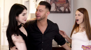 Две ненасытные красотки не смогли устоять перед мощным соблазном — их алчные губки жадно ласкают твёрдый член, а стоны становятся всё громче. Парень с восторгом разрывает их влажные киски, пока подруги балуют друг друга язычками и шаловливыми пальчиками. Погрузись в этот откровенный вихрь тройного удовольствия — тебя ждёт взрыв страсти и желание большего!
