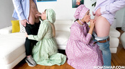 Две зрелые милфы с огромными жопами решили объединиться ради грязного инцест-разврата вчетвером. Прямо в одежде сучки начинают ласкать парней, быстро переходя к групповой долбежке. Одна мачеха принимает болт в киску, пока вторая жадно заглатывает агрегат другого пасынка. Групповуха идет в бешеном ритме: сучки меняются партнерами, стонут в унисон и демонстрируют свои волосатые пилотки под прицелом камеры. Это потное порево наполнено хлюпаньем смазки и громкими шлепками, пока все участники не тонут в океане похоти и липкого семени.