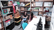 Чтобы не попасть за решетку, воровки согласились уединиться с охранником в подсобке. Там цыпочки сняли лишнюю одежду и стали работать ротиками, будто последний раз в жизни. Брюнеточки умело отсосали член, а потом по очереди обильно кончили от глубокого проникновения в мокрые и узкие пилотки прямо в подсобке.