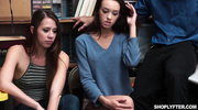 Мужик в форме поймал двух милашек за воровством и придумал необычное наказание, чтобы они больше не позволяли себе нарушать закон. Цыпочки сразу сняли лишнюю одежду и продемонстрировали прелести. Сучки нарвались на ЖМЖ и принялись сосать большой член, а уже потом выпросили трах во влажные пилотки прямо на столе.