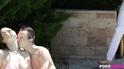 Худенькая и длинноногая малышка получила удовольствие от массажа, а когда оказалась облита маслом с ног до головы, дала порадовать себя еще и мастурбацией. Сразу после предварительных ласк малышка отсосала массажисту и своему мужику. Закончив работать ртом, худышка в масле дала трахнуть обе дырочки по очереди и одновременно.