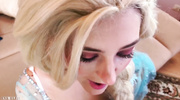 Eva Elfie решила порадовать любителя мультиков и сделала косплей на Эльзу из Холодного Сердца. Малышка с большой и натуральной грудью сразу встала на колени и отсосала чуваку по всем правилам. После глубокого минета беленькая штучка отдалась в вагину и, не раздеваясь догола, достигла бурного и яркого финала.