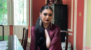 Вечернее одиночество толкнуло гламурную модель в красных чулках на мастурбацию. Брюнетка грациозно сняла платье и принялась ласкать себя пальчиками. Красотка жадно растирала клитор. Девушка громко стонала, и её большие сиськи напрягались от нарастающего удовольствия. Модель кончила, и она улыбнулась, наслаждаясь приятным послевкусием.