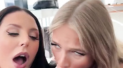 Две грудастые подружки напялили кружевное белье и чулочки. Цыпочки с большими сиськами не оставили негру права выбора и легко развели его на ЖМЖ. Красотки встали на колени и отсосали черному любовнику, будто последний раз в жизни. После глубокого минета обе сучки с удовольствием отдались в вагины и дополнительно насладились язычками друг друга.