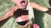 На острове блондинка Фрея Штейн зажигает, опускаясь на колени перед чуваком. Она заглатывает его стояк, слюнявя головку до основания. Слюни текут по подбородку, пока она теребит языком. Он хватает её за волосы, углубляя минет, а камера ловит крупный план. Её стоны сливаются с шумом волн, усиливая похоть. Она ускоряет, доводя его до пика. Сперма заливает её ротик, и она глотает с жадностью, подмигивая в объектив.
