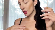 Дым сигареты вьётся, пока знойная брюнетка шепчет грязные фантазии. Её сиськи выпирают из тесной одежды, пальцы ласкают кожу, вызывая дрожь. Она выдыхает дым, глаза горят похотью, а голос хрипит, описывая, как хочет быть оттраханной. Пот блестит на шее, она дразнит, проводя пальцами по соскам. Её бёдра покачиваются, она смакует свою развратность, обещая жаркое шоу. Кожа пылает, она хихикает, представляя, как её берут грубо.