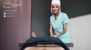 Медсестра в коротком халатике решает, что пациенту нужно совсем другое лечение, и начинает жадно обсасывать его болт. Блондинка заглатывает ствол до самого основания от первого лица, глядя на мужика похотливым взглядом под грязный шепот. Крупный план фиксирует, как головка упирается в её нёбо, вызывая сочные чавкающие звуки. Весь осмотр превращается в оральный марафон, где медсестричка старательно высасывает из пациента каждую каплю сока, доводя его до дикого экстаза.