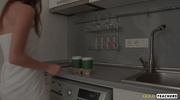 Куколд-муж смотрел, как его худая брюнетка дразнит курьера. Она заглотила его член, хлюпая слюной, пока муж дрочил. Камера поймала, как курьер вогнал ствол в её киску, долбя раком, а она кричала от кайфа. Оргазм заставил её тело содрогнуться, а он кончил на её попку. Жена, размазывая сперму, подмигнула мужу, намекая на следующую доставку.