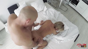 Утром лысый муж возбудил жену, теребя её сиськи. Стянув трусики, он вылизал киску, а затем драл по самую матку. Перейдя к попке, долбил по яйца, пока она не застонала. Сперма заполнила её анал, и она кайфовала, кончая. Камера снимала её трепещущую попку и стоны. Страсть бушевала, пока она тонула в оргазме. Милашка смаковала кремпай.