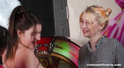 В туалете бара Jolie Butt и её развратные подруги устроили настоящий фестиваль лизинга. Брюнетки поскидывали лишнюю одежду и начали яростно натирать свои щелки, прижимаясь друг к другу телами. Одна из девок жадно вылизывает Jolie, пока та заталкивает свои пальцы в мокрую дырочку другой подружки. Влажные шлепки и стоны сучек наполняют тесную кабинку, создавая атмосферу дикой похоти. Девки по очереди меняются местами, чтобы каждая получила свою порцию ласк языком. Сцена заканчивается видом полностью залитых соками тел и дрожащих от оргазма подружек, которые не боятся быть застуканными.