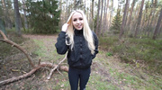 Парень заманил блондинку в лес и уговорил на секс. Она опустилась на колени, заглатывала его член и стонала, тёрла киску от возбуждения. Стянув лосины, крошка подставила вагину, кричала и извивалась, пока он долбил её. Она бурно кончила и слизала сперму. Телочка вытерла губы, подмигнув, довольная приключением.
