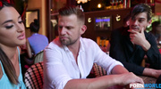 Брюнетка с массивной задницей решает, что дилдо ей больше не нужно, когда рядом есть два настоящих ствола. Пока один мужик забивает ей рот, заставляя пускать слюни от глубокого заглота, второй пристраивается сзади. МЖМ переходит в жесткое двойное проникновение: один болт заходит в киску, а второй — в растянутый анус. Жопастая сучка захлебывается в стонах, чувствуя, как два агрегата трутся внутри неё, заполняя всё пространство и заставляя её шоколадку пульсировать от кайфа.