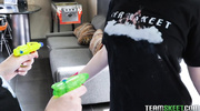 Цыпочки в купальниках ласкали друг друга пальчиками и язычками прямо в надувном бассейне. Брюнеточки с большими сиськами получили удовольствие от мастурбации и кунилингуса. После предварительных и оральных ласк малышки отсосали накаченному мужику и по очереди кончили от глубокого проникновения в пилотки.