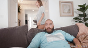 Грудастая штучка в кружевных трусиках соблазнила бородатого соседа и стала получать удовольствие от мастурбации и кунилингуса прямо за спиной у парня. Kenzie Love насладилась предварительными и оральными ласками, а уже потом начала сосать член в ответ, который в итоге приняла глубоко в мокрую пилотку и мигом кончила.