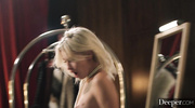 Красивая актриса театра решила немного расслабиться и пошалить перед выступлением. Милашка с маленькой грудью получила член за щеку и отсосала коллеге прямо в гримерке. После глубокого и слюнявого отсоса, когда крошка насладилась ответным куни, она отдалась в пилотку и громко стонала, пока не достигла оргазма.