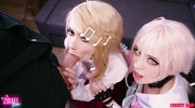 Миленькие косплейщицы с упругими задницами развели общего знакомого на жаркий тройничок во время домашнего порно. Сучки в откровенных нарядах сразу пустились во все тяжкие и обе умело отсосали член. После глубокого и слюнявого отсоса, когда сами крошки насладились кунилингусом, они по очереди кончили от глубокого проникновения в вагины.