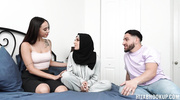 Красивая брюнетка устроила урок секса втроем для соседки-арабки в хиджабе. Обе цыпочки одновременно встали на колени и устроили мужчине слюнявый двойной отсос, работая ротиками в унисон. Мужик поочередно оприходовал их мокрые пилотки, трахая их с особой жестокостью. Он драл их грубо, чувствуя жар и волосатость киски арабки. Обе женщины сошлись в одном неистовом оргазме, их тела содрогнулись. Он облил лица обеих сучек горячей спермой, покрыв их густым белым камшотом.