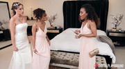 Красотка в свадебном платье развела красивых подружек невесты на секс втроем и, забив на жениха, стала получать удовольствие от мастурбации. Развратные штучки получили нереальный кайф от шаловливых пальчиков и попрактиковались в страстных поцелуях. После этого лесби пустили в ход язычки и кончили по несколько раз.