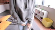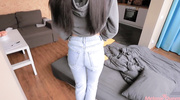 Домашние посиделки брата и сестры принимают пошлый оборот, когда брюнетка решает избавиться от тесных джинсов. Оставшись в одной кофте и крошечных трусиках, она начинает тереться о стояк брата, провоцируя его на активные действия. Парень срывает с нее белье и начинает драть родственницу прямо на диване, вгоняя член в ее мокрую пилотку. Стоны сестренки становятся всё громче, пока агрегат методично заталкивается в ее нежную дыру. Брат не знает жалости, тарабаня сестру в быстром темпе и наслаждаясь видом ее прыгающих сисек. В финале он обильно заливает её живот горячей и липкой спермой.