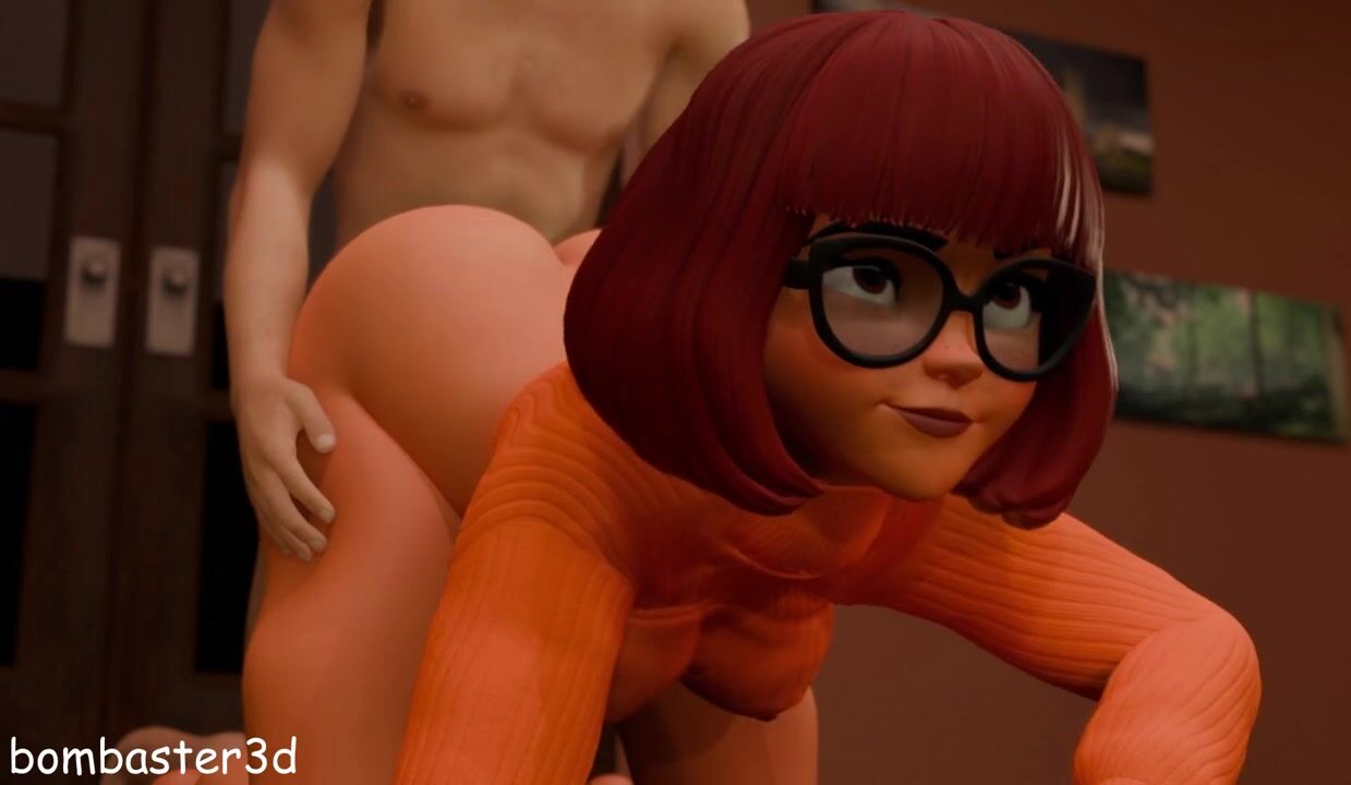 Рыжую героиню-ботаншу Вельму из мультика СкубиДу трахают раком, заливая ее влагалище горячей спермой.