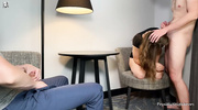 Сучка в кружевных трусиках в платье отдаётся чужаку перед куколдом. Он надрачивает, пока она берёт болт за щеку, заливая слюнями. Мужик долбит её пилотку, заставляя кричать от кайфа. Её формы колышутся, стоны наполняют спальню. После отсоса она мастурбирует, оргазмы сносят ей крышу. Парень кончает внутрь, и куколд лижет её киску.