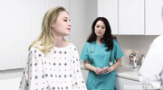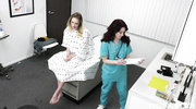 Врач и медсестра развели очередную пациентку на секс втроем прямо в палате. Малышка с небольшой грудью разделась догола и получила удовольствие от мастурбации и кунилингуса. После этого обе девчонки отсосали большой член, а в итоге по очереди кончили от траха во влажные и мокрые пилотки в разных позах.