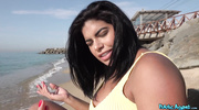 Сочная латинка с пляжа отправилась домой к богатому пикаперу, где сняла лишнюю одежду и сразу же начала сосать толстый член. Брюнеточка с пышными формами отработала ротиком по всем правилам, но на этом не остановилась. После слюнявого отсоса чернявая сучка отдалась в вагину в разных позах и мигом кончила прямо перед камерой.
