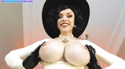 Леди Димитреску с длинными когтями решила подразнить мужика и начала играться с пальчиками и большим дилдо прямо у него на глазах. Милфа в чулках оседлала большую игрушку мокрой киской, но и этого показалось недостаточно. Сучка переключилась на настоящий член и, смочив его слюнями, выпросила трах в тугую попку до оргазма.